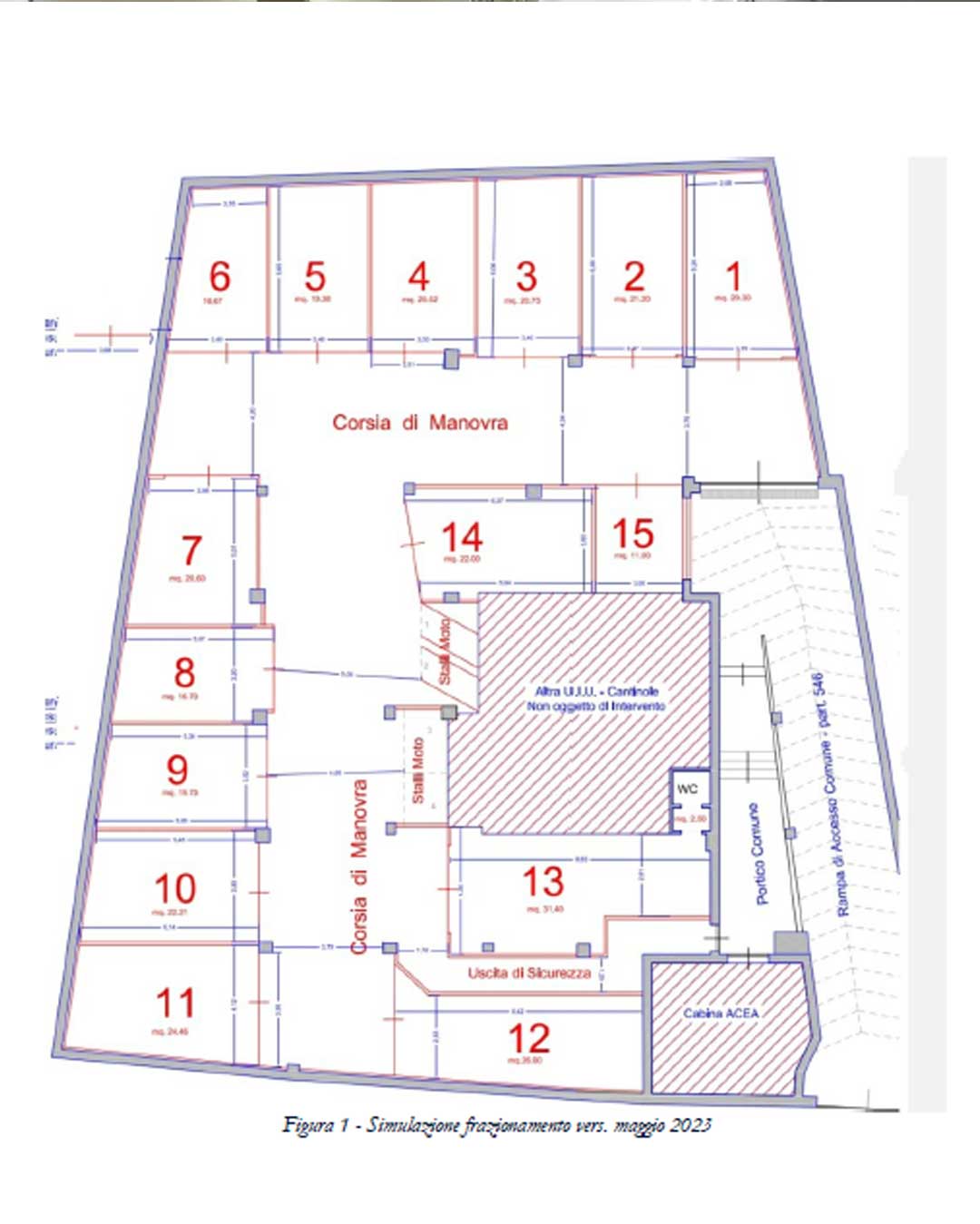 Si tratta di un intervento conversione di una autorimessa in 15 Box auto singoli, sito nel comune di Roma in via Gran Sasso.